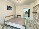 Кухня полностью укомплектована дорогой встроенной техникой от Bosch, Siemens, LG и Indesit. Испанская плитка в кухне и в ванной добавляет элегантности, а в спальне и прихожей уложен ламинат 33 класса. В комнате расположена полноценная двухспальная кровать с комфортным матрасом.